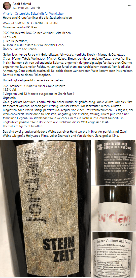 “These are two fundamentally different wines from one source, which are perfect in their own way. Two wines like great Hollywood films, full of drama and playfulness. A big movie theater." Sommelier legend Adi Schmid said this beautiful sentence about our two mature ones Grüner Veltliner Stone time and Old Vines written. The winemaker's heart is happy and especially Hannes, as a passionate film fan and former film buyer. But it also makes us proud to read such beautiful words about two wines that we were able to accompany over several years from the vine, through fermentation and storage to perfection in the bottle.