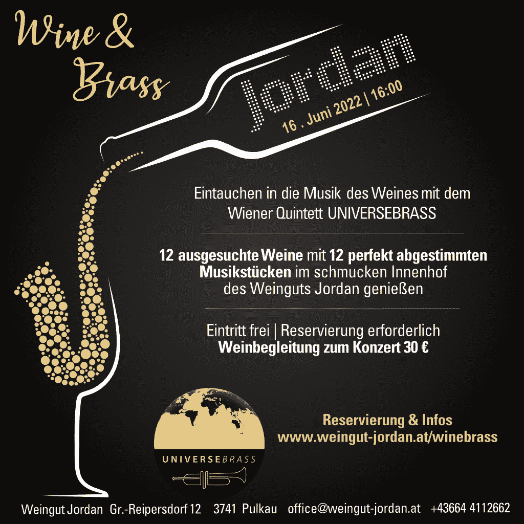 Der Eintritt ist frei, aufgrund begrenzter Platzanzahl ist eine Ticketreservierung unter www.weingut-jordan.at/winebrass erforderlich.